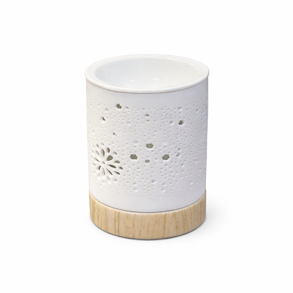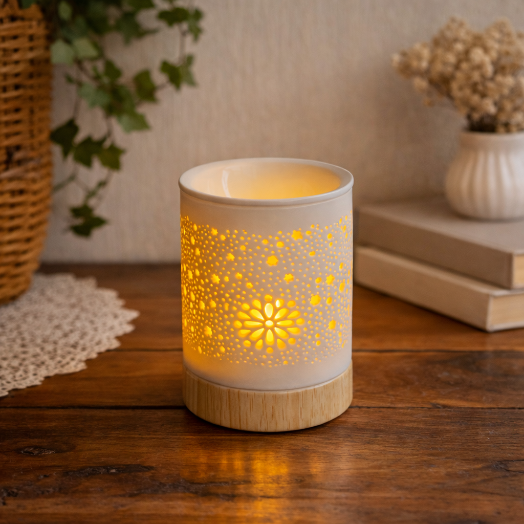 Aroomilamp ühendab endas lihtsa ja elegantse sisustuselemendi ning praktilise kasutuse. Portselanist valmistatud lamp on kaunistatud õrnade dekoratiivsete lõigetega, mis lasevad küünlaleegil kaunilt läbi kumada ning loovad ruumi pehme valguse. Lamp koosneb kahest osast. Ülemises kausis võib kasutada aroomivaha (ilma veeta) või vett koos eeterlike või aroomiõlidega. Lambi alumises osas asub koht teeküünlale, mille soojus hakkab kausis olevat vett või vaha õrnalt kuumutama. Soojuse toimel vabanevad meeldivad aroomid, mis täidavad ruumi ning loovad lõõgastava, hubase ja rahuliku atmosfääri.