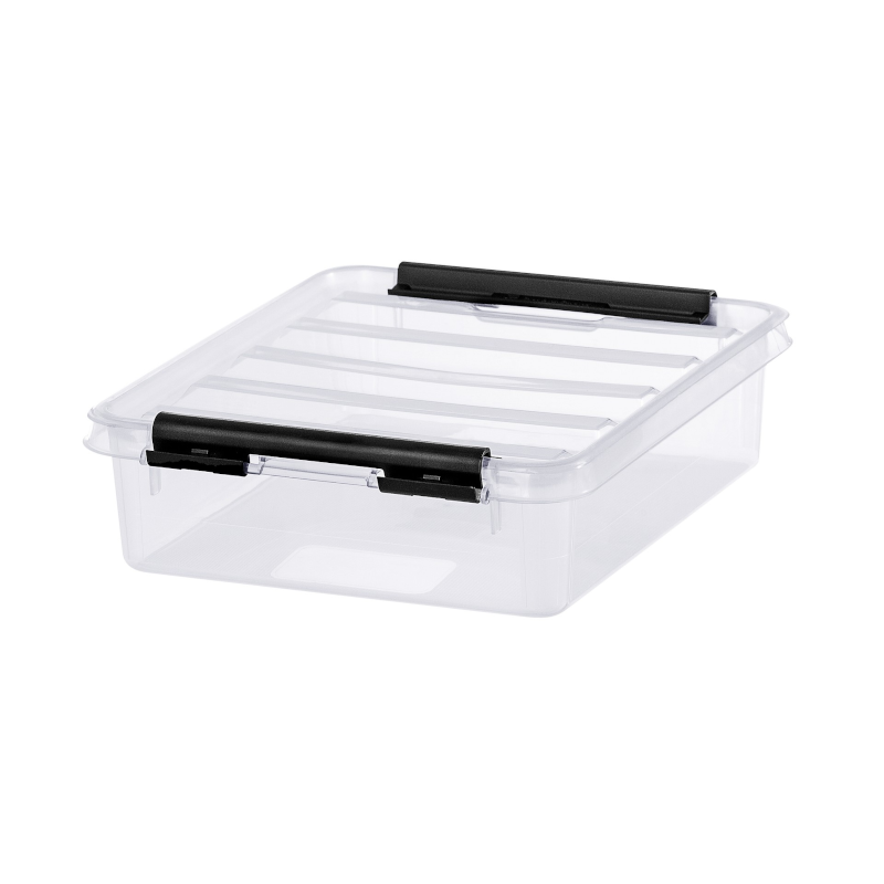 Plastist hoiukarp sobib erinevate esemete hoiustamiseks – olgu selleks kunsti- ja käsitööesemed, kontoritarbed, helmed. Läbipaistev materjal võimaldab sisu kiiret ja mugavat tuvastamist ilma kaant avamata. Tugevad taaskasutatud plastist klambrid hoiavad kaane kindlalt suletuna. Sobib ka toiduainete hoidmiseks.