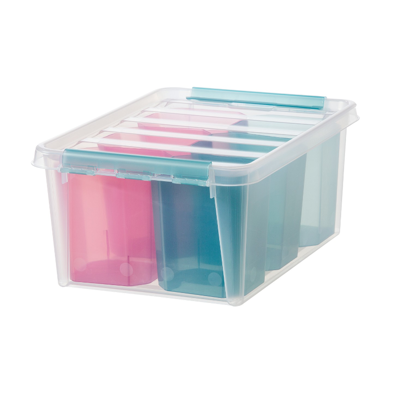 Plastist hoiukast, milles on 6 värvilist sisekarpi, sobib ideaalselt lastetuppa erinevate väiksemate esemete hoiustamiseks – olgu selleks kunsti- ja käsitööesemed, hobitarbed või mänguasjad. Läbipaistev materjal võimaldab sisu kiiret ja mugavat tuvastamist ilma kaant avamata. Tugevad taaskasutatud plastist klambrid hoiavad kaane kindlalt suletuna. Sobib ka toiduainete hoidmiseks.