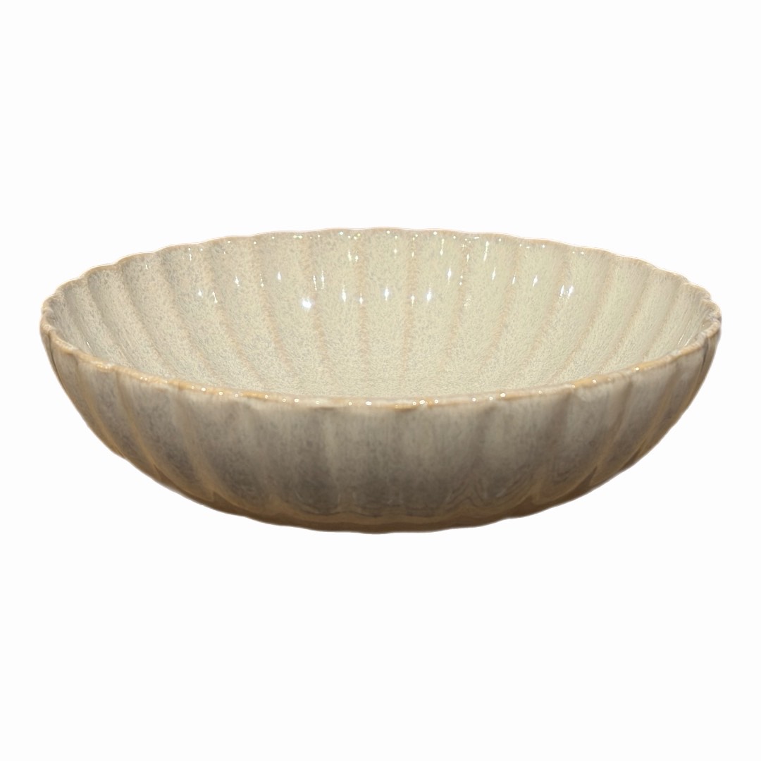 Stiilne kivikeraamika kauss antiikvalges toonis loob lauale modernse ja õrna ilme. Laineline serv lisab kausile pehme ja elegantse välimuse. Kivikeraamika on tugev, madala poorsusega ja pika kasutuse jooksul hästi vastupidav. Sobib suurepäraselt jogurtile, puuviljadele, supile või serveerimiseks. Talub nõudepesumasinat ja mikrolaineahju.