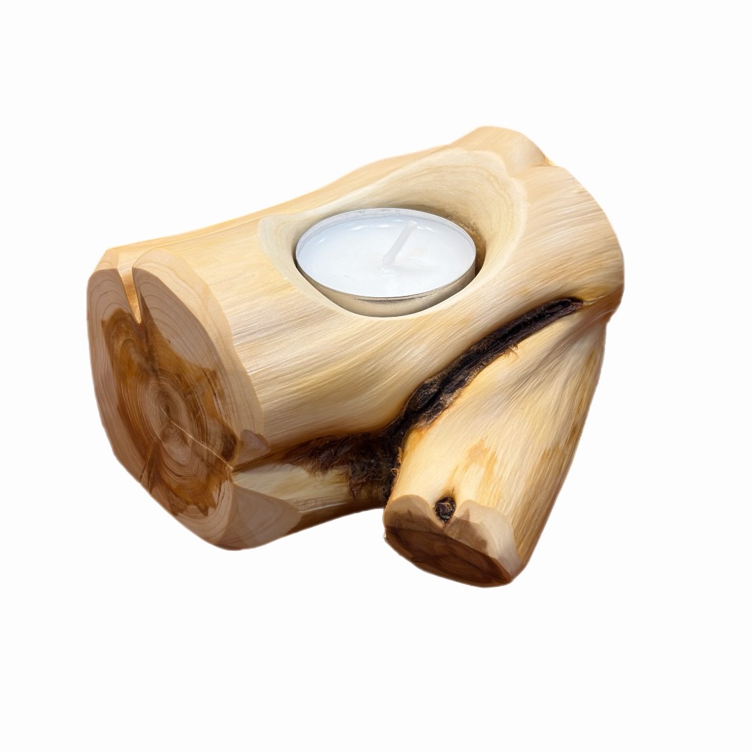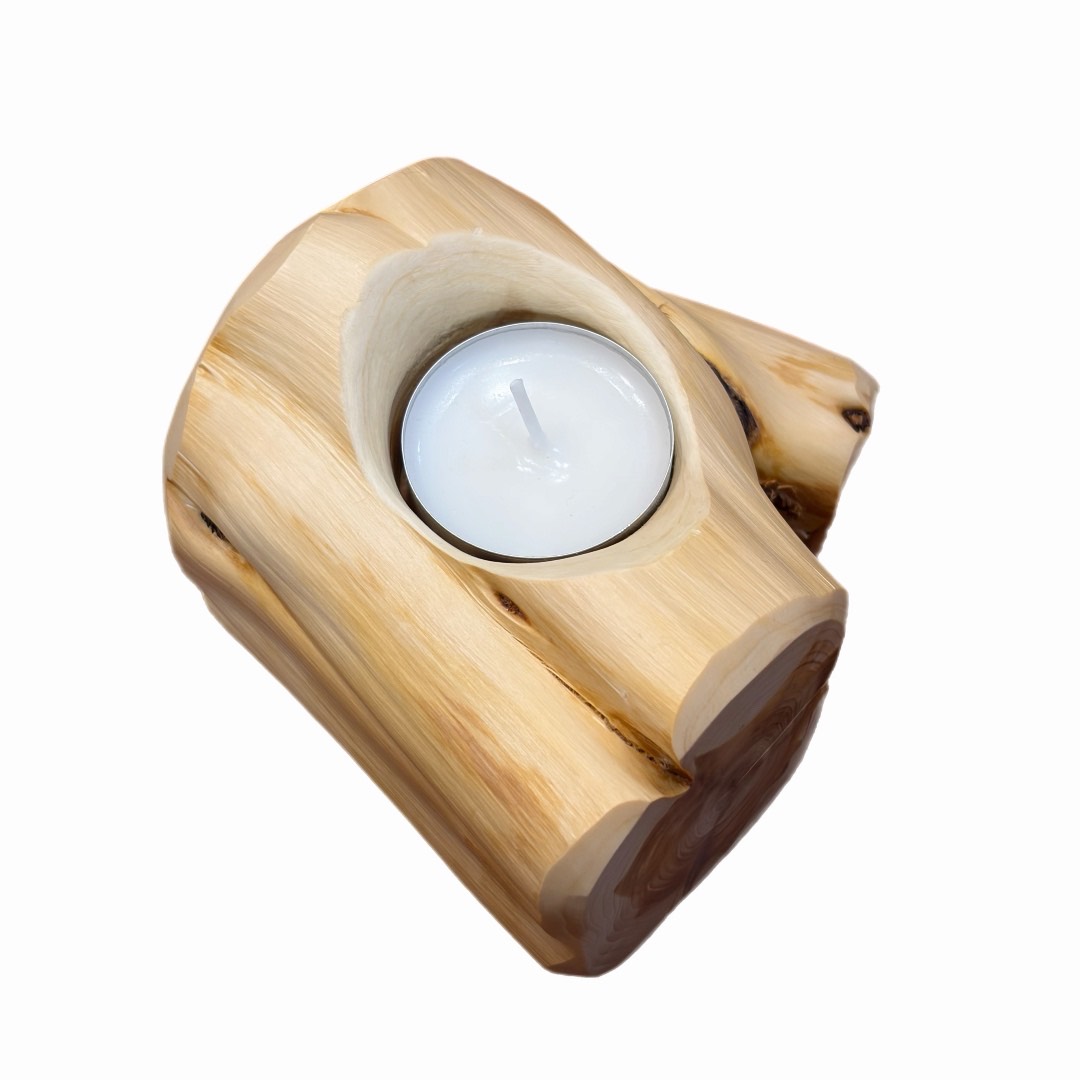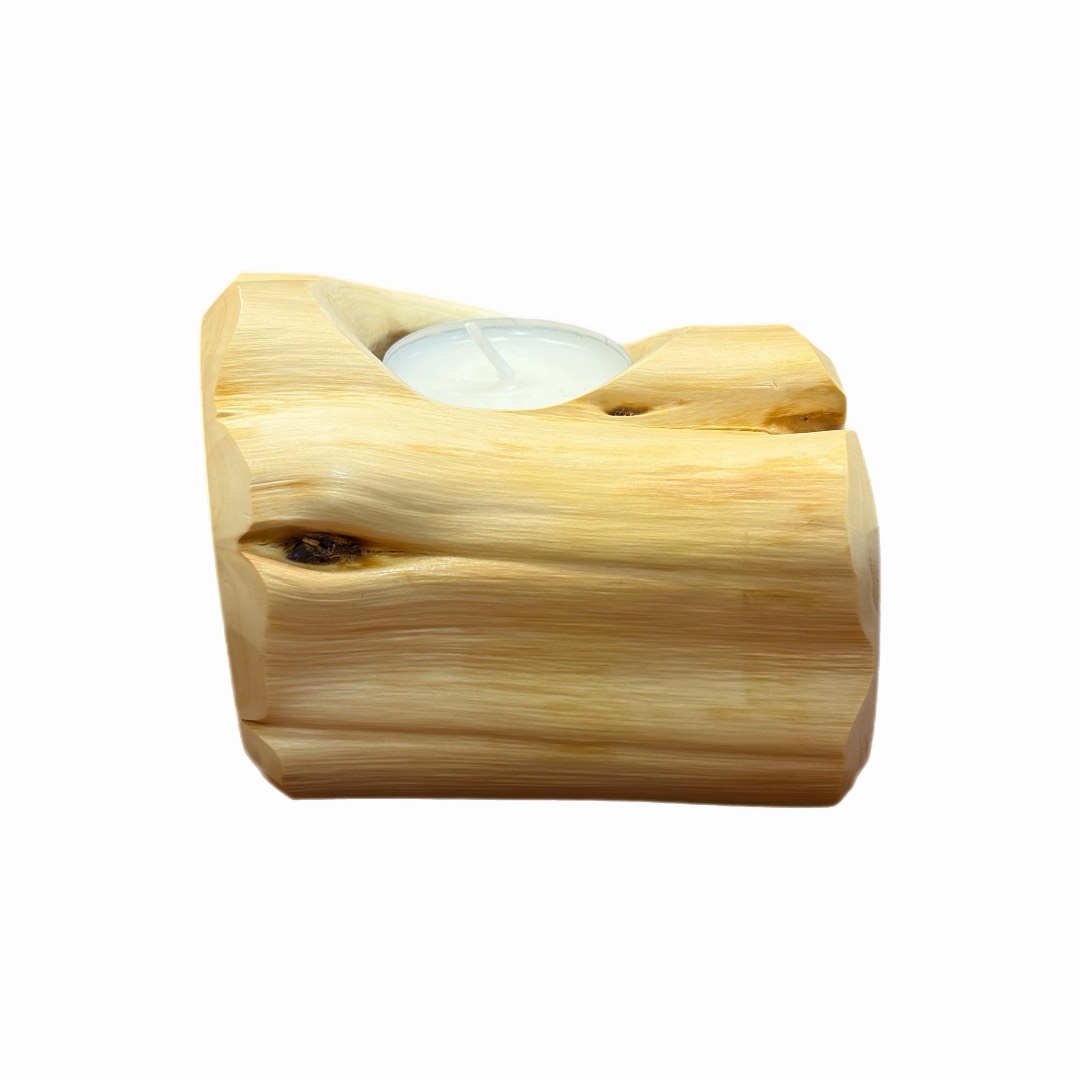 Käsitööna valmistatud kadakapuidust küünlahoidja, millel on looduslik muster ja meeldiv soe toon. Kuna tegemist on 100% loodusliku materjaliga, muudavad iga oksakoht, kooretükk või väike pragu küünlahoidja veelgi omanäolisemaks. Iga toode on oma kuju ja välimuse poolest täiesti unikaalne. Sobib teeküünlale ja loob ruumis hubase meeleolu. Kaunis ja praktiline sisustuselement ning hea kingiidee. Küünlahoidja on töödeldud puiduvahaga. Teeküünal kuulub komplekti.