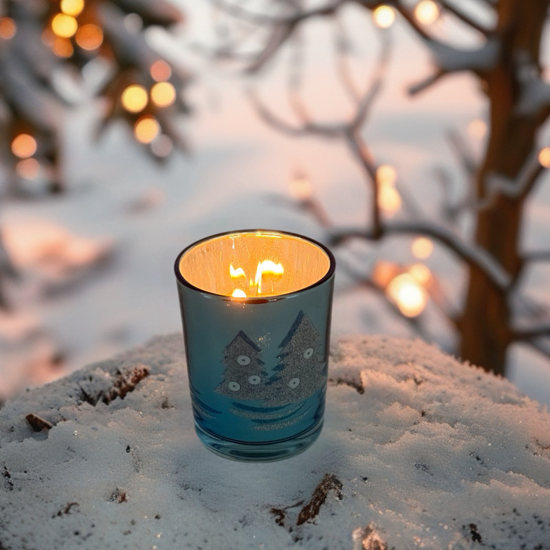 Kaunis klaasist küünlatops, mida kaunistavad õrnad talve- ja kuusemotiivid. Ühel küljel on kujutatud ehitud kuusk, teisel lumised raagus puud. Sobib suurepäraselt hubase meeleolu loomiseks pimedatel talveõhtutel või pidulauale lisandiks. Elegantne ja ajatu disain, mis sobib nii koju kui ka kingituseks. NB! Fotol on kujutatud ühe küünlatopsi erinevad küljed.