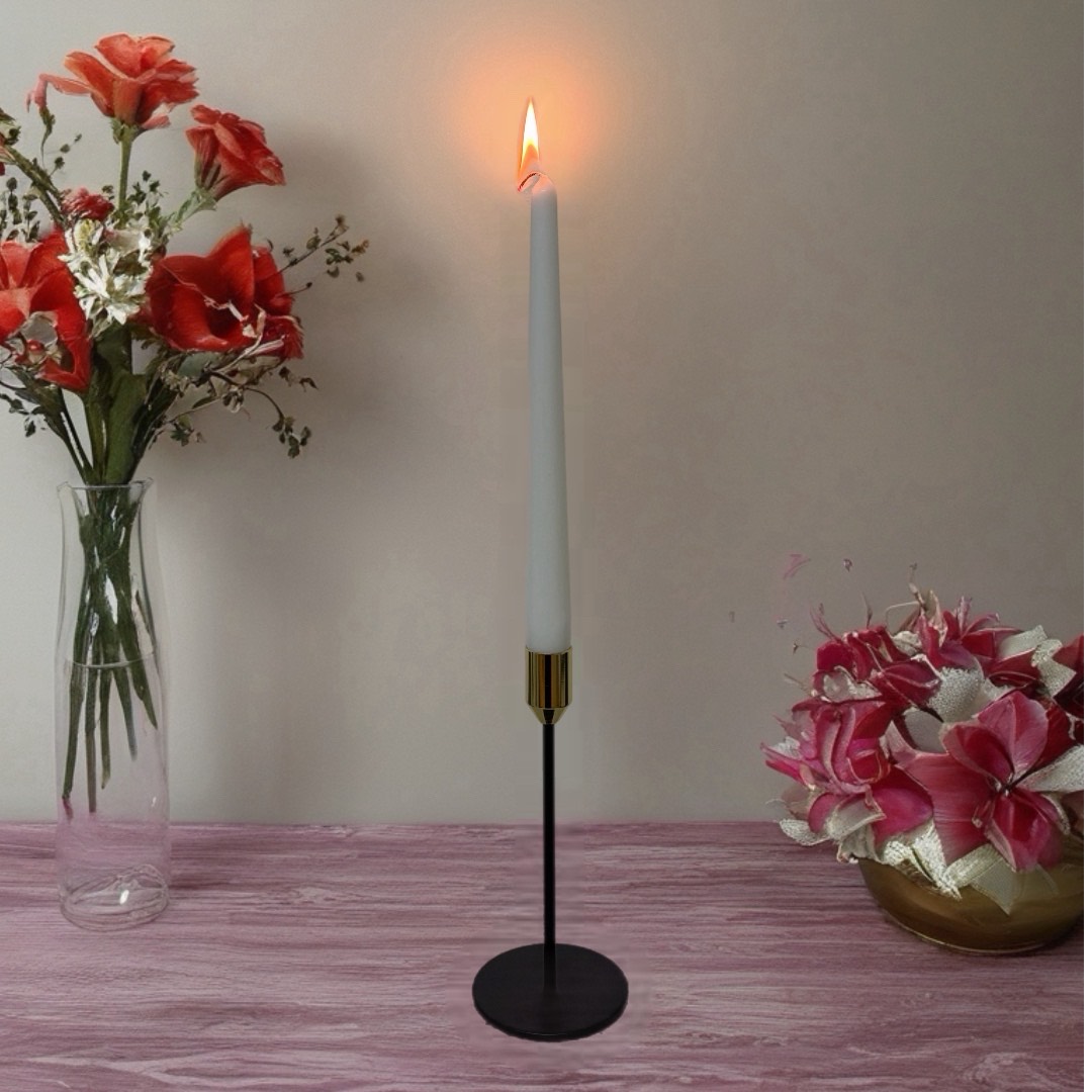 Minimalistlik ja elegantne metallist küünlajalg – Must/Kuld – ühendab kaasaegse disaini ja ajatuse. Must alus ja peen kuldne küünlaalus loovad stiilse kontrasti, mis sobib nii modernsesse interjööri kui ka pidulikule lauale. Lihtne, kuid pilkupüüdev detail, mis rõhutab küünlaleegi soojust ja hubasust.