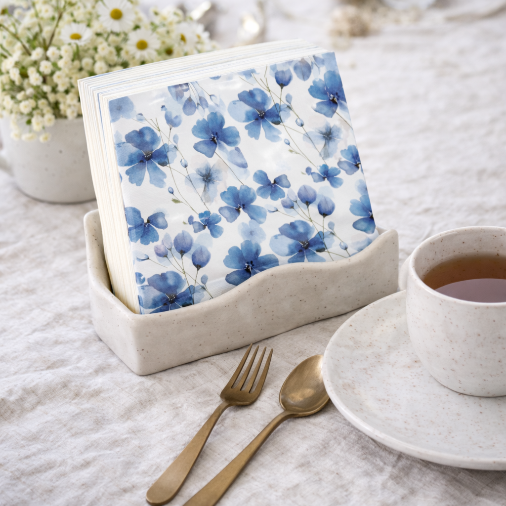 Lisa oma lauale, pidusöögile või hubasele koosviibimisele isikupära ja stiili kaunite salvrätikutega. Kvaliteetne pabersalvrätik, millel on kujutatud kaunid sinised õied, ei ole pelgalt praktiline lauatarvik, vaid ka kaunis kujunduselement, mis muudab iga koosviibimise eriliseks ja terviklikuks.