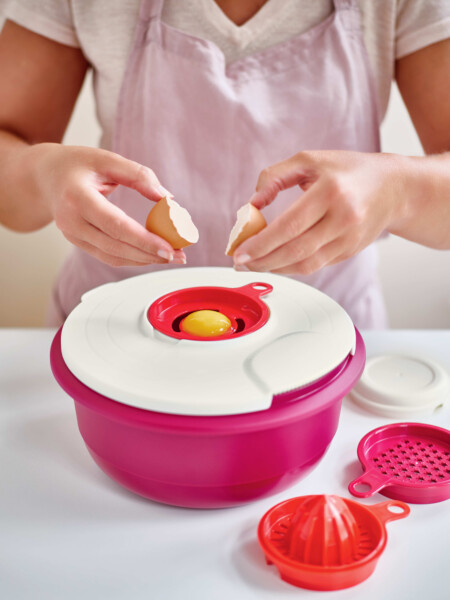 Tupperware Ultimate vahustamisrõngas on praktiline köögiabiline, mis kaitseb vahustamisel või segamisel pritsmete eest. Rõngas sobib Tupperware kaussidele Ultimate kauss 3,5 L, Aloha 2 L ning sobitub Kodukati tootega, on lihtsasti paigaldatav ja hõlpsasti pestav. Ideaalne lahendus igale kodukokale, kes hindab puhtust ja mugavust. Lisa pildil vahusatmisrõnga augu kaas on pärit Köögikati komplektist.
